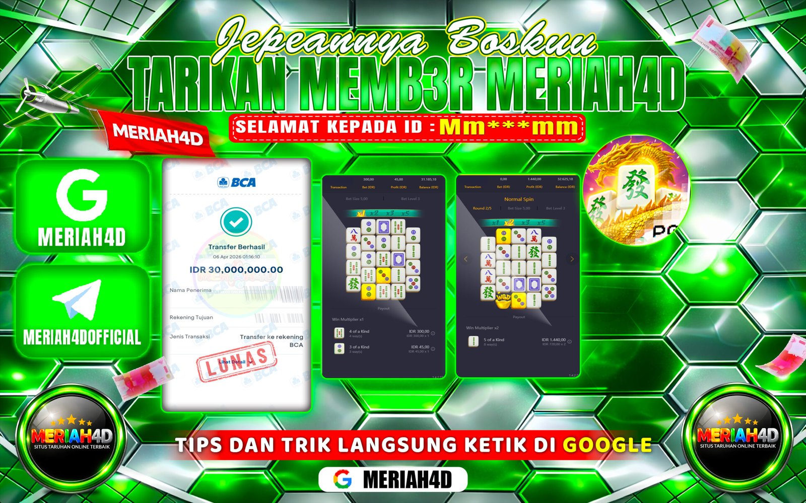 Selamat Kepada ID : Mm****mm Atas Withdraw Rp.30.000.000 Juta Hari ini. Ditunggu Withdraw Selanjutnya dan ajak juga teman temannya bergabung…