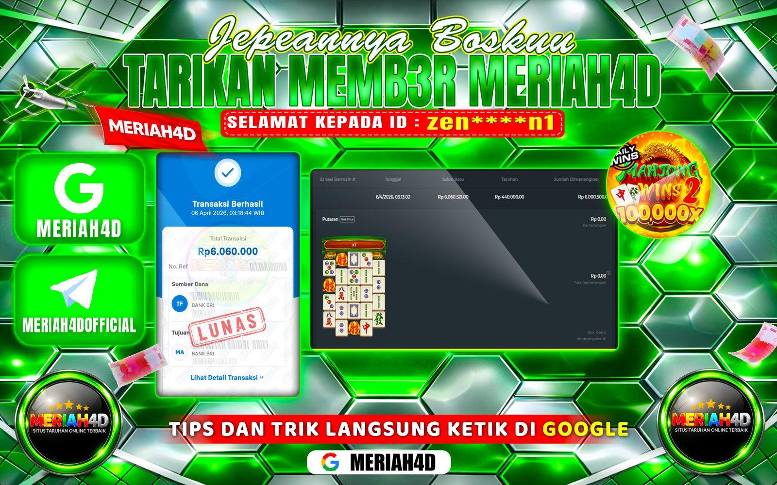 Selamat Kepada ID : zen****n1 Atas Withdraw Rp. 6.060.000 Juta Hari ini. Ditunggu Withdraw Selanjutnya dan ajak juga teman temannya…