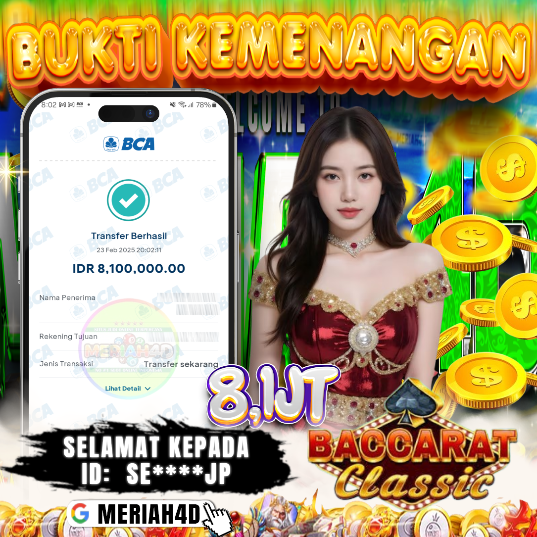 Selamat Kepada ID : SE***JP Atas Withdraw Rp. 8.100.000 Juta Hari ini. Ditunggu Withdraw Selanjutnya dan ajak juga teman temannya bergabung di Meriah4d