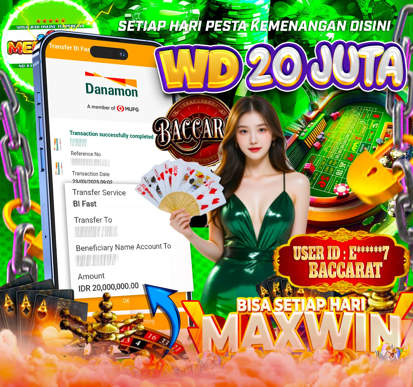 Selamat Kepada ID : E*****7 Atas Withdraw Rp. 20,000,000 Juta Hari ini. Ditunggu Withdraw Selanjutnya dan ajak juga teman temannya bergabung di Meriah4d