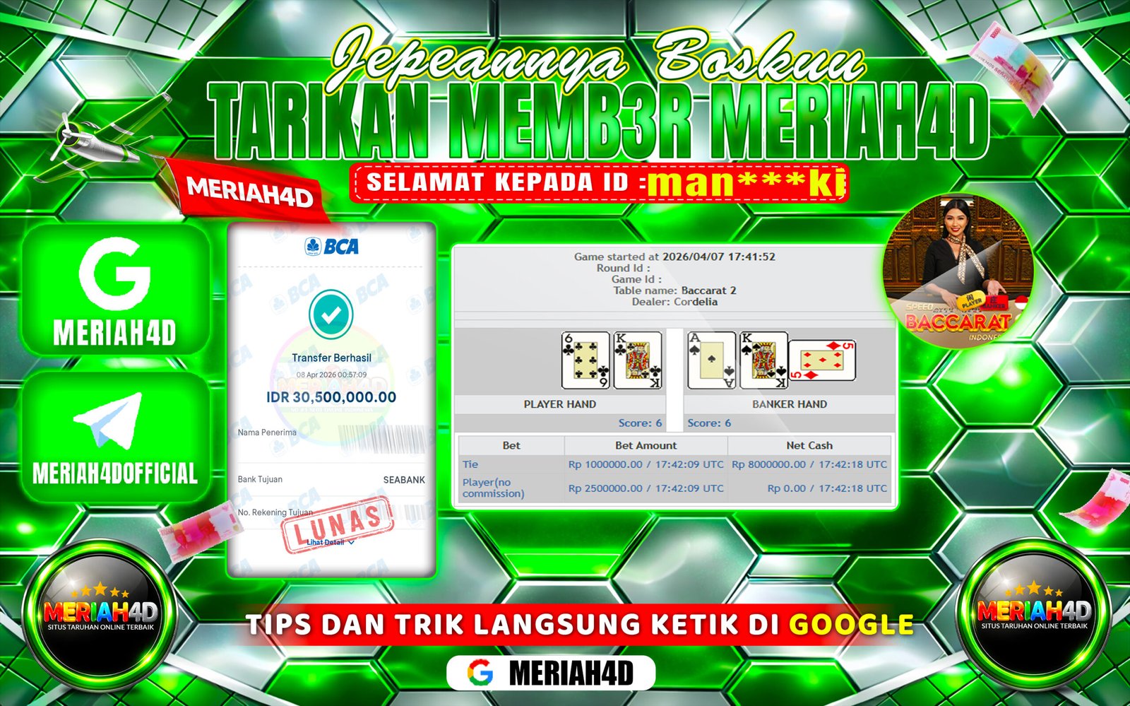 MERIAH4D Bukti Kemenangan LIVE CASINO BACCARAT