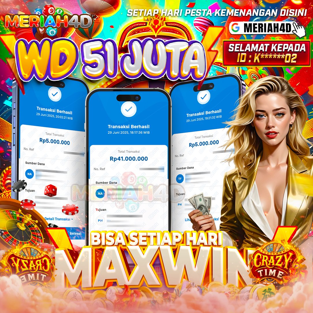 Selamat Kepada ID : K******02 Atas Withdraw Rp. 51.000.000 Juta Hari ini. Ditunggu Withdraw Selanjutnya dan ajak juga teman temannya bergabung di Meriah4d