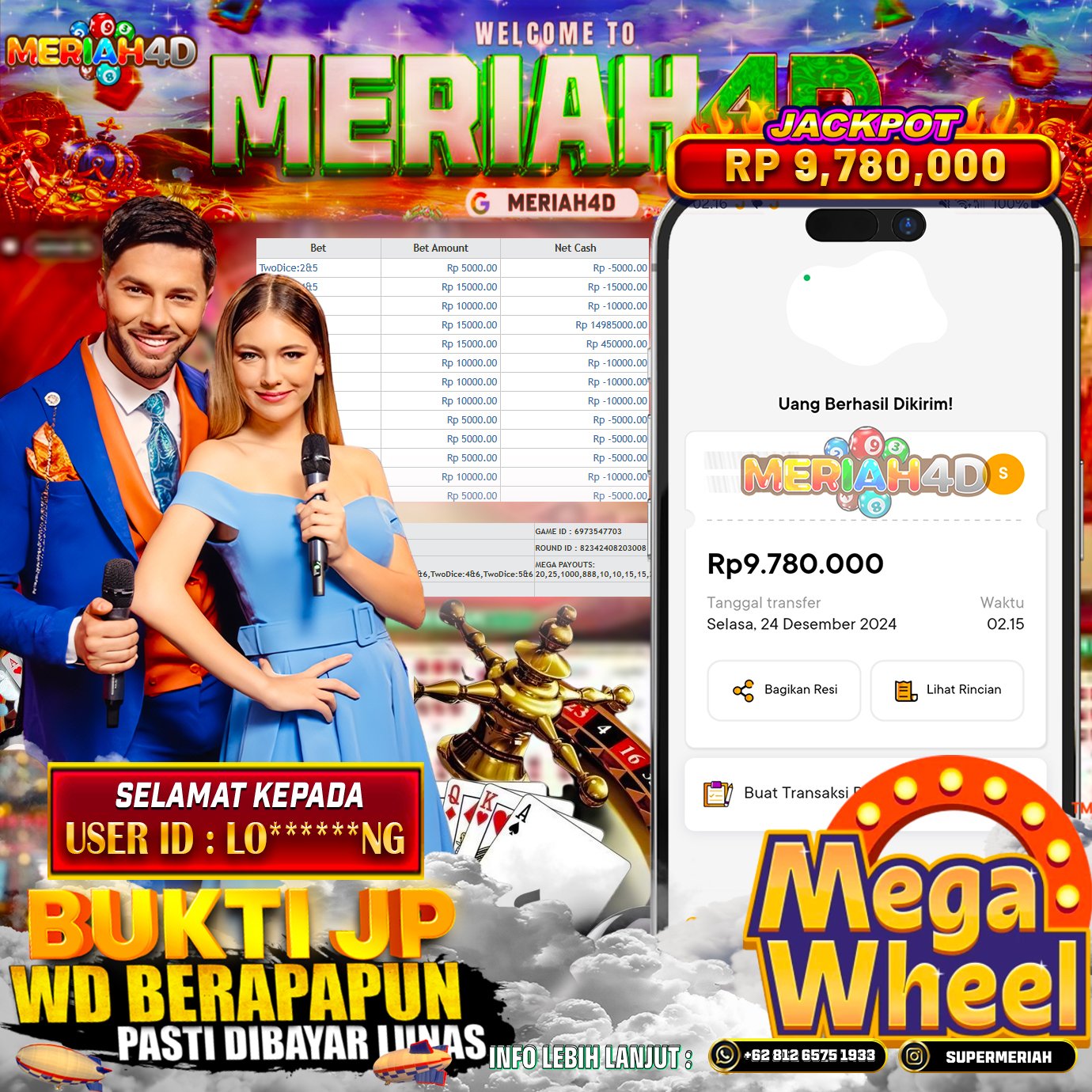 MERIAH4D Bukti Kemenangan LIVE CASINO MEGA WHEEL