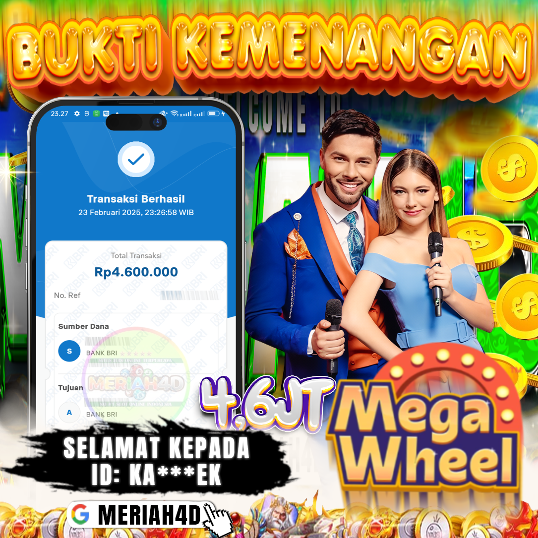 Selamat Kepada ID : KA***EK Atas Withdraw Rp. 4.600.000 Juta Hari ini. Ditunggu Withdraw Selanjutnya dan ajak juga teman temannya bergabung di Meriah4d