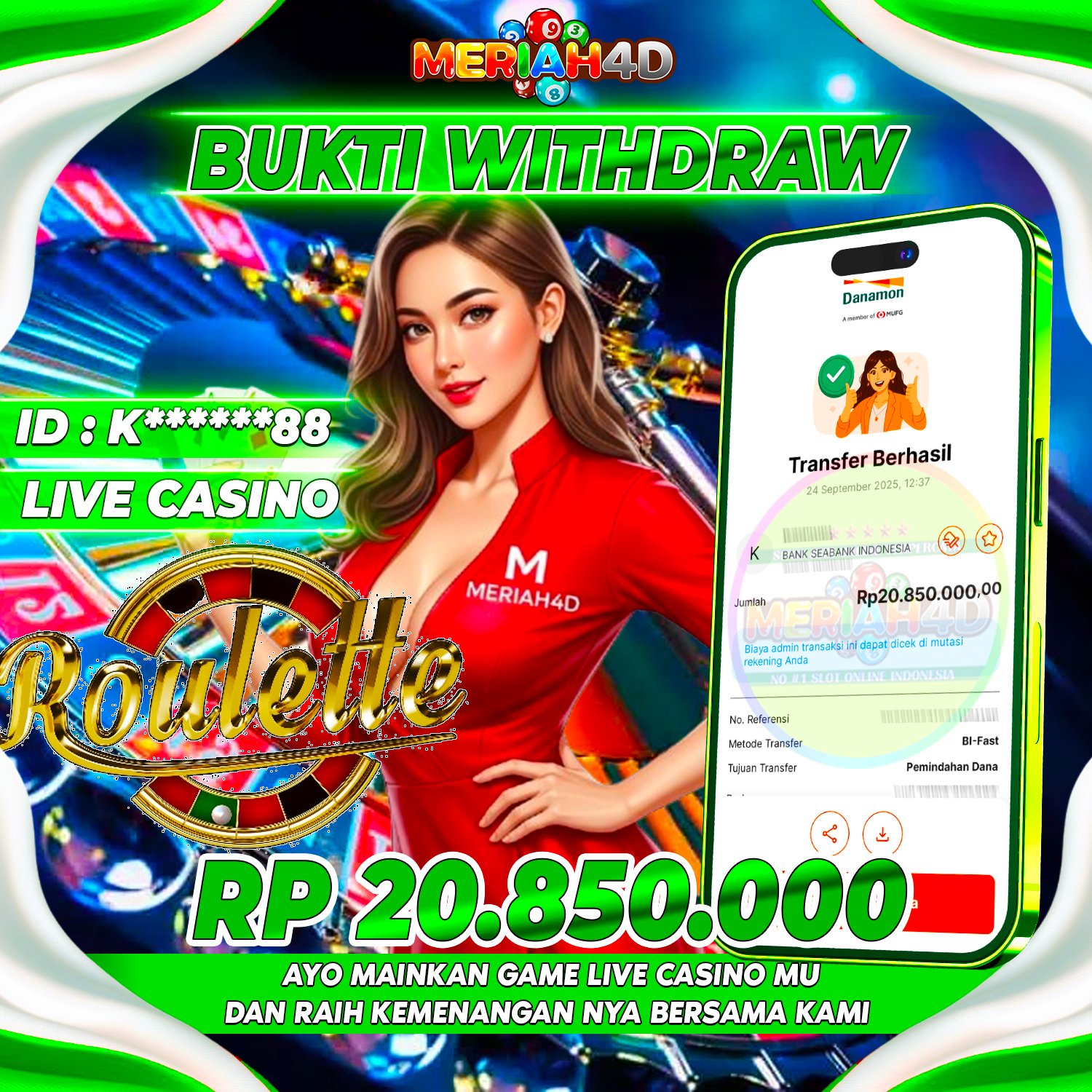 Selamat Kepada ID : K****88 Atas Withdraw Rp. 20.850.000 Juta Hari ini. Ditunggu Withdraw Selanjutnya dan ajak juga teman temannya bergabung di Meriah4d