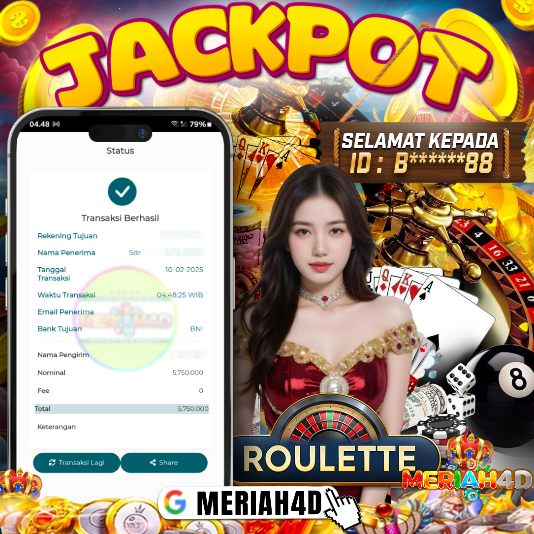 Selamat Kepada ID : B******88 Atas Withdraw Rp. 5.750.000 Juta Hari ini. Ditunggu Withdraw Selanjutnya dan ajak juga teman temannya bergabung di Meriah4d