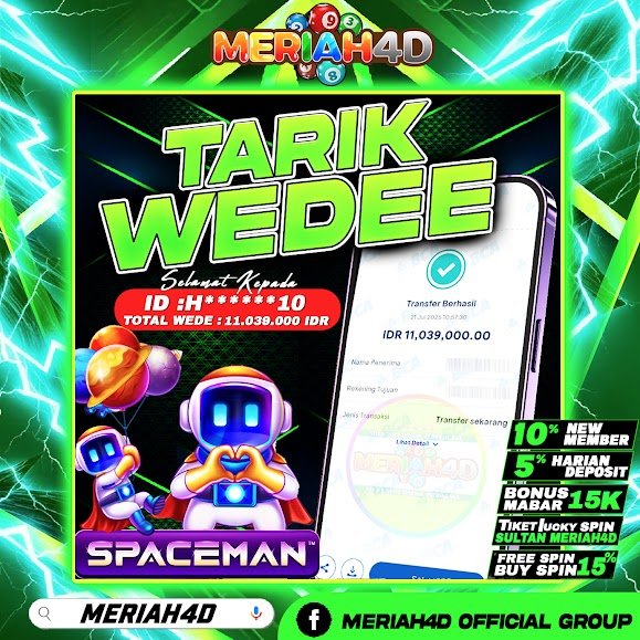 Selamat Kepada ID : H********10 Atas Withdraw Rp. 10.000.000 Juta Hari ini. Ditunggu Withdraw Selanjutnya dan ajak juga teman temannya bergabung di Meriah4d