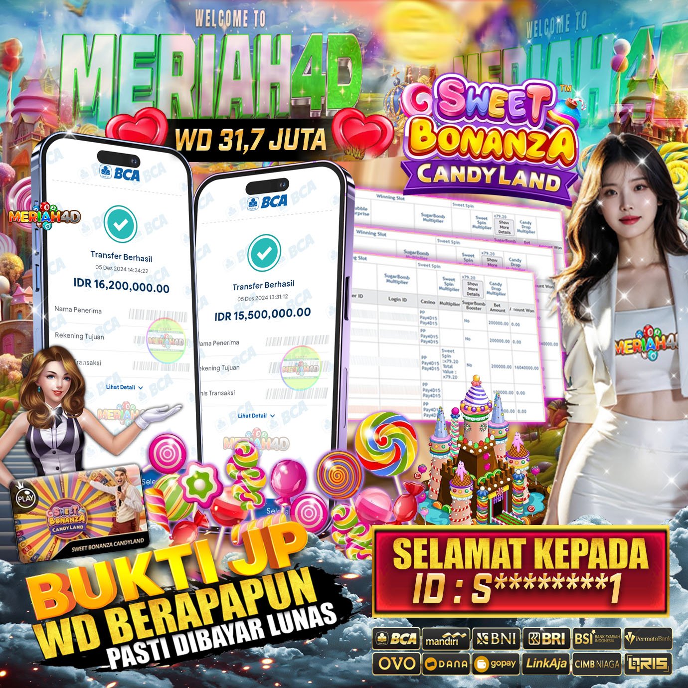 MERIAH4D Bukti Kemenangan Slot LIVE CASINO SWEET BONANZA CANDYLAND