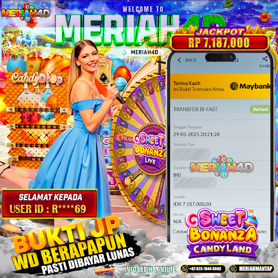 Selamat Kepada ID : R*****69 Atas Withdraw Rp. 7,187,000 Juta Hari ini. Ditunggu Withdraw Selanjutnya dan ajak juga teman temannya bergabung di Meriah4d