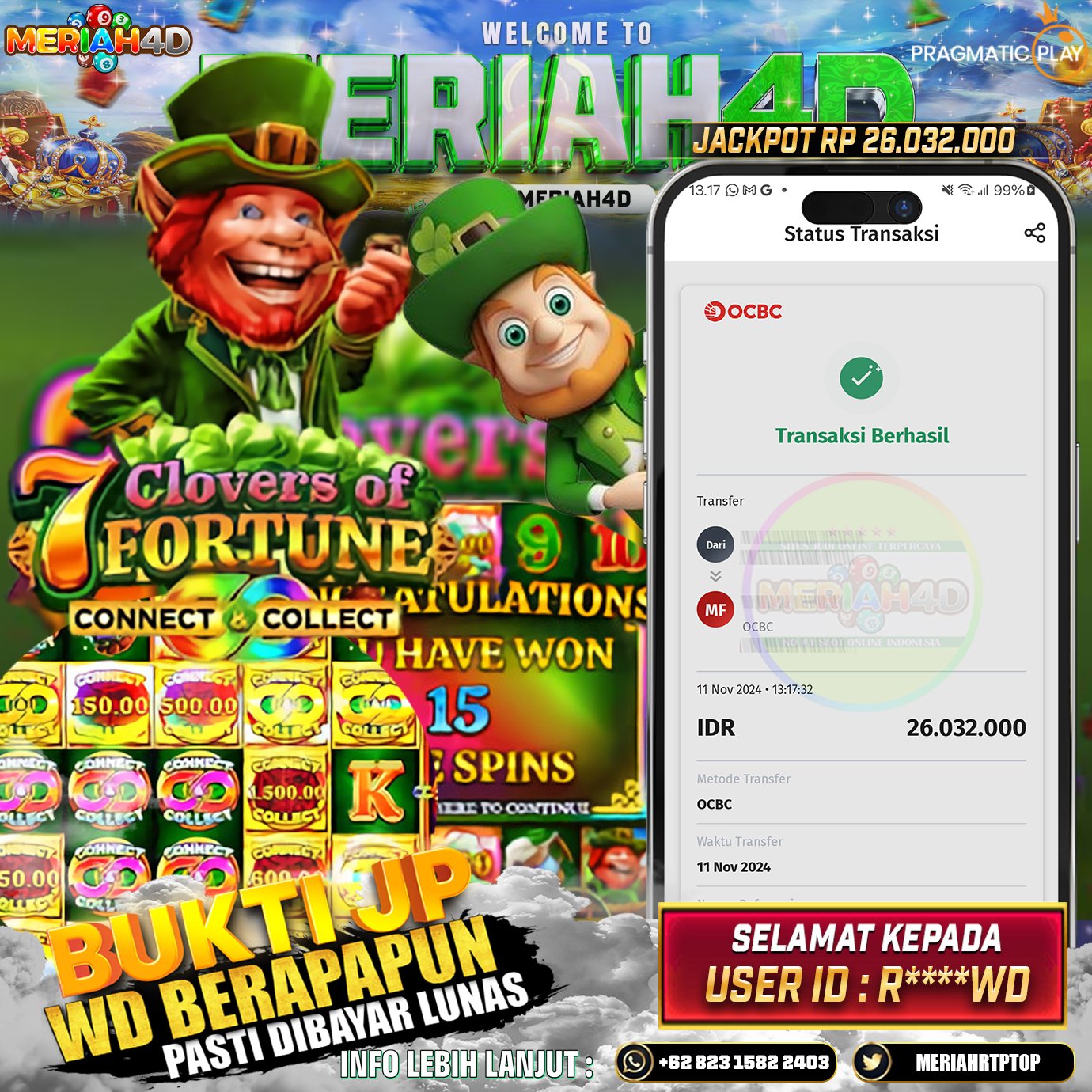 MERIAH4D Bukti Kemenangan Slot 7 CLOVERS OF FORTUNE
