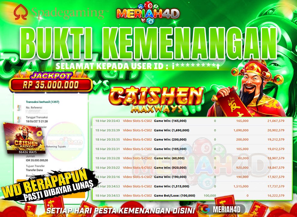 MERIAH4D Bukti Kemenangan Slot CAISHEN MAXWAYS