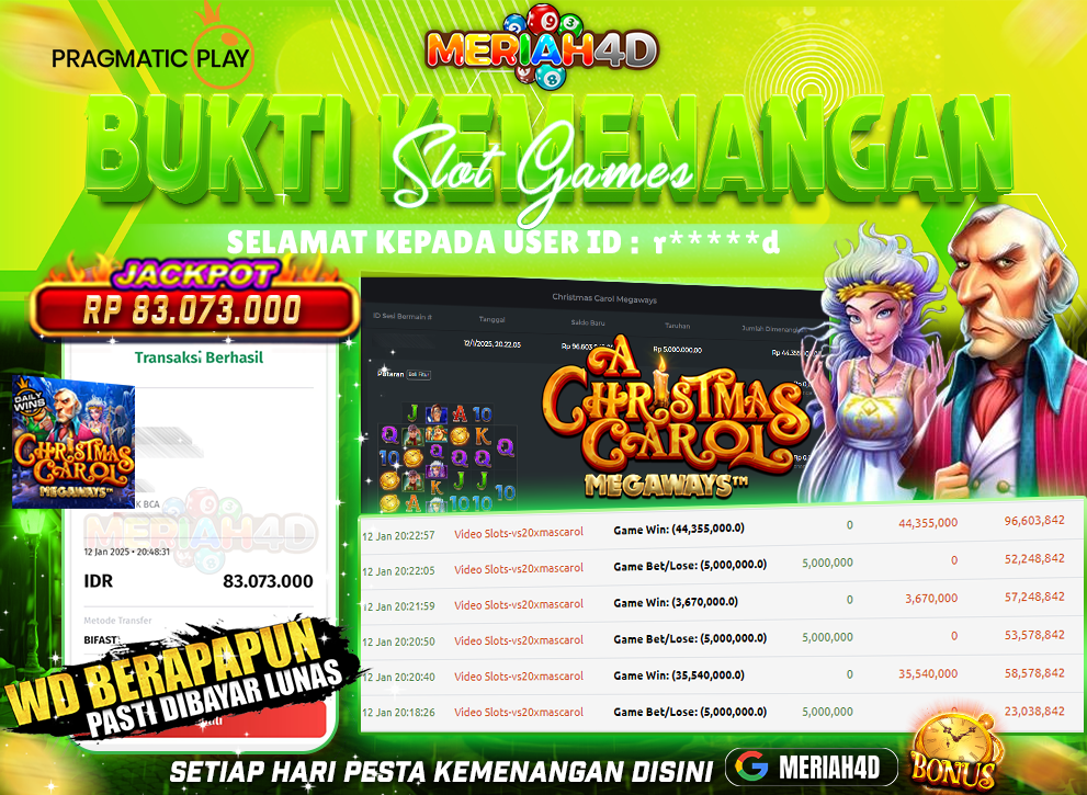 MERIAH4D Bukti Kemenangan Slot CHRISTMAS CAROL MEGAWAYS