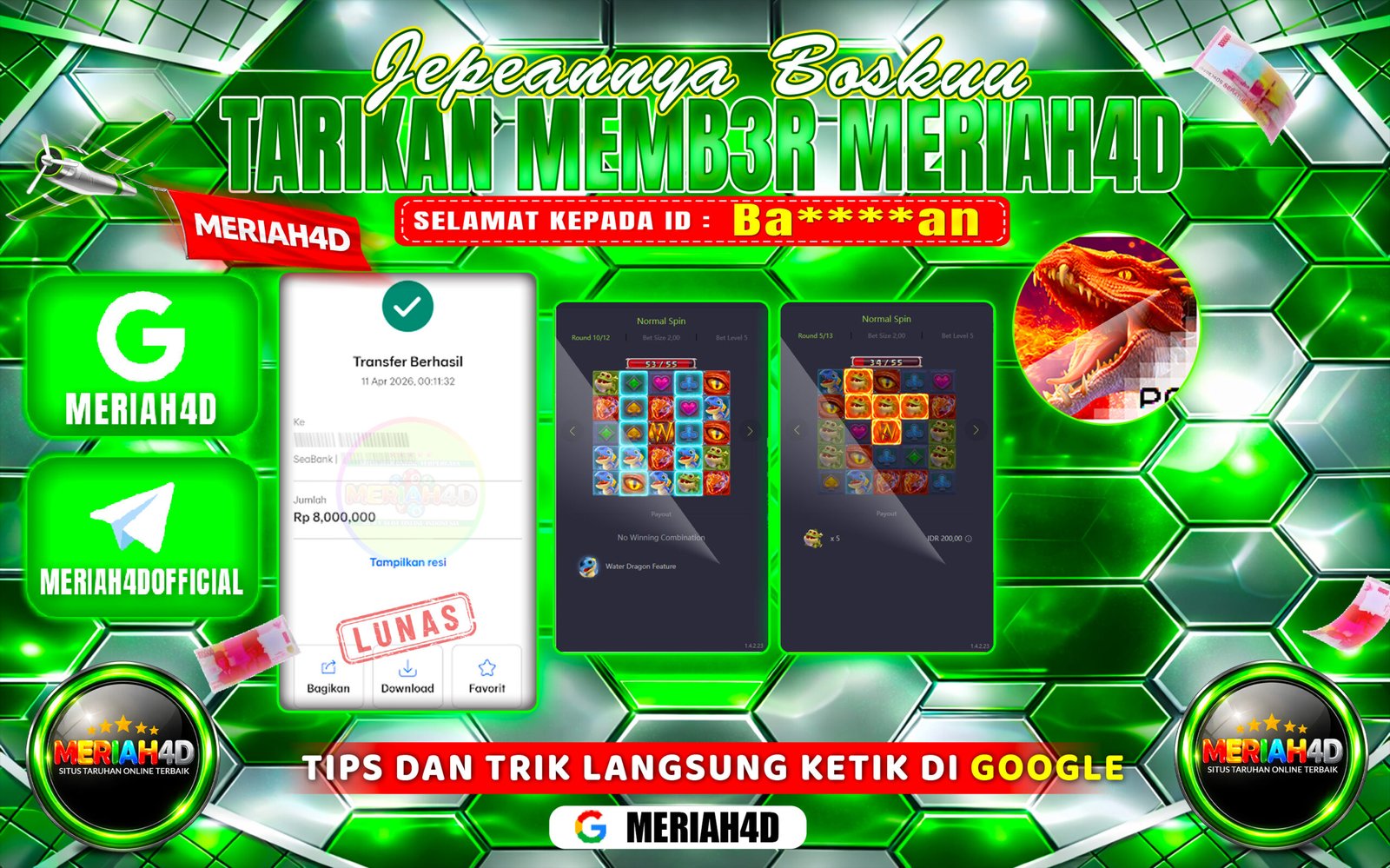 MERIAH4D Bukti Kemenangan Slot DRAGON HATCH 2