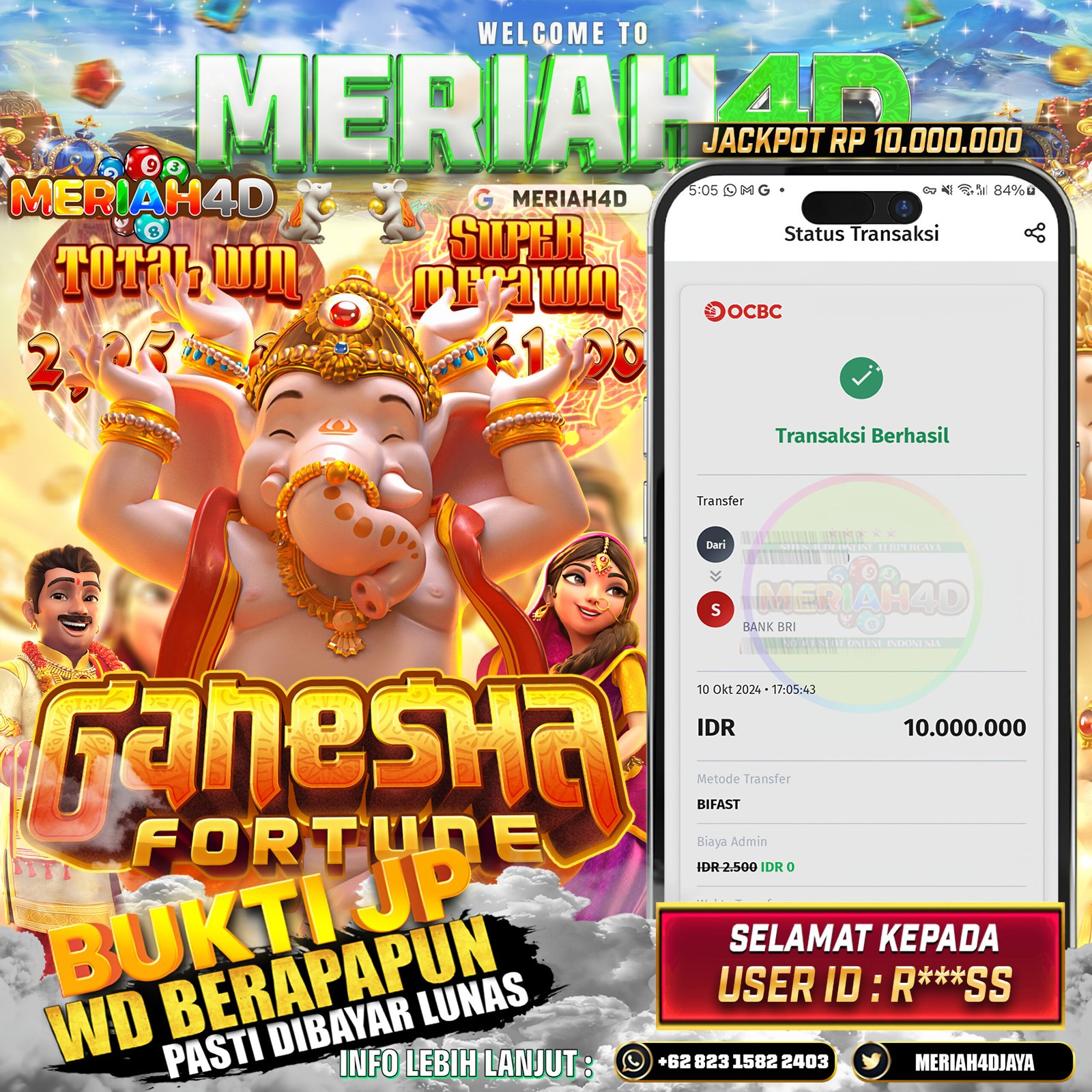 MERIAH4D Bukti Kemenangan Slot GANESHA FORTUNE