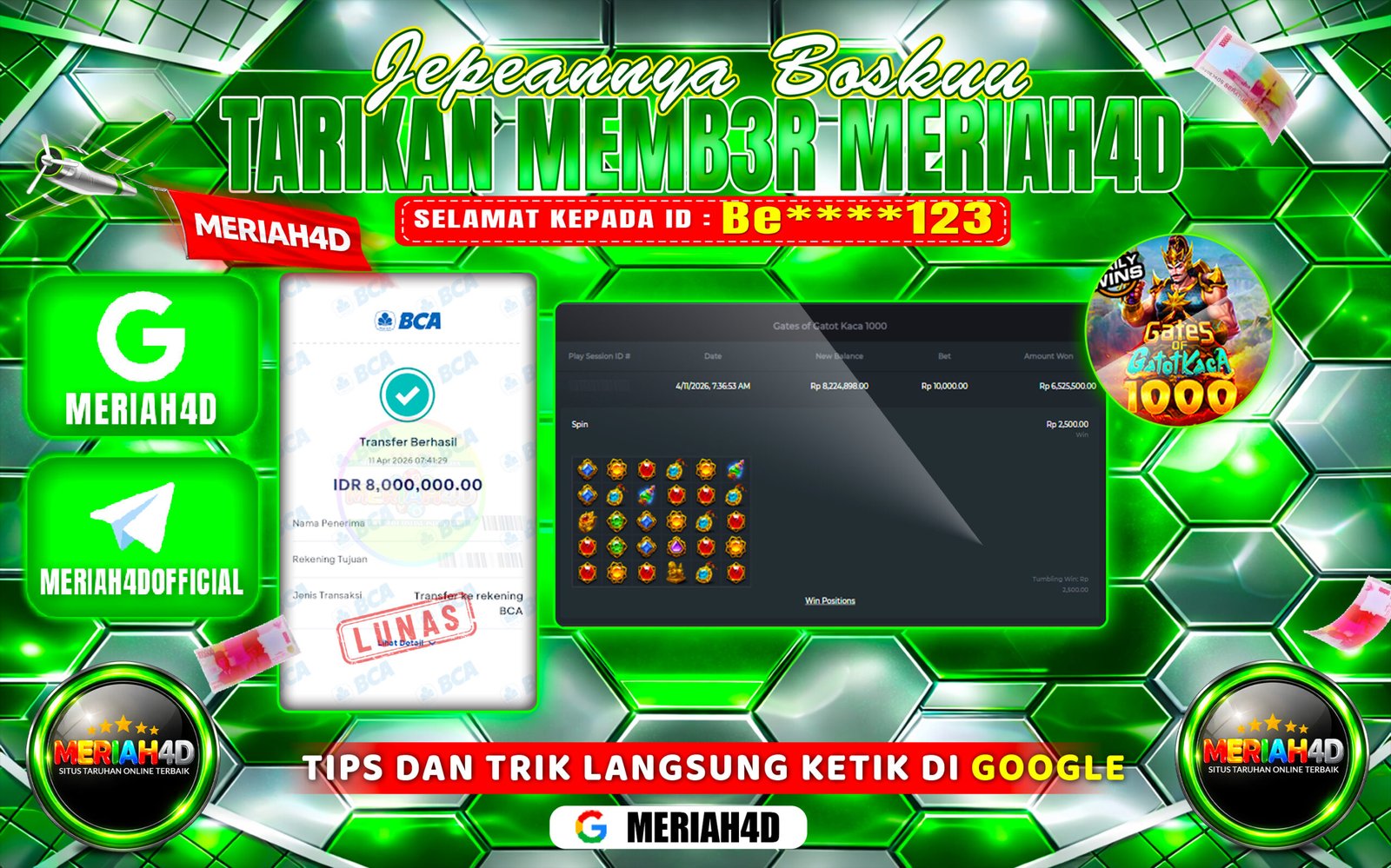 Selamat Kepada ID : Be****123 Atas Withdraw Rp. 8.000.000 Juta Hari ini. Ditunggu Withdraw Selanjutnya dan ajak juga teman temannya bergabung di Meriah4d