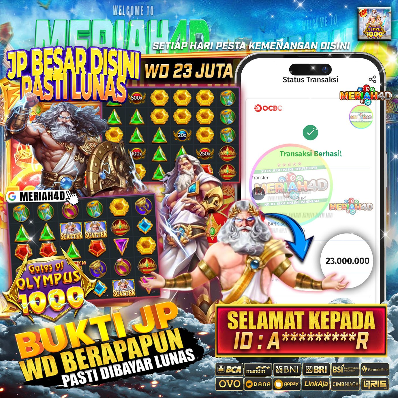 MERIAH4D Bukti Kemenangan Slot GATES OF OLYMPUS 1000