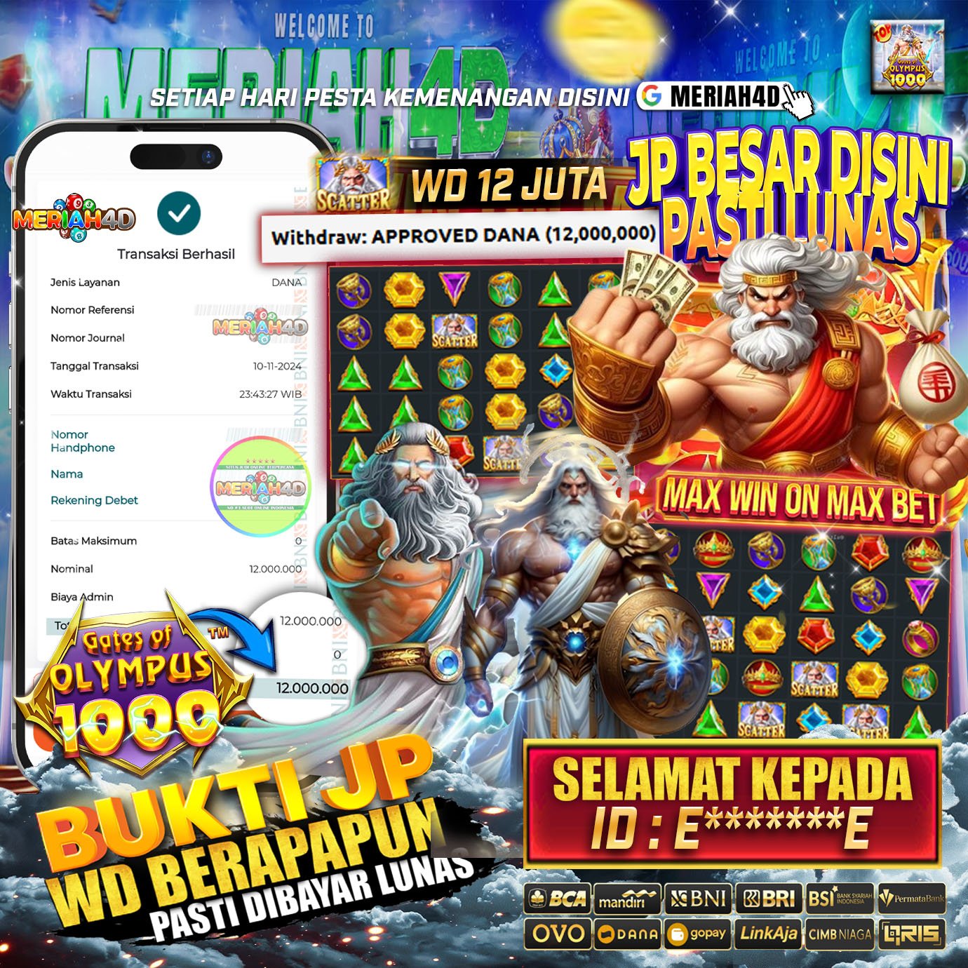 MERIAH4D Bukti Kemenangan Slot GATES OF OLYMPUS 1000