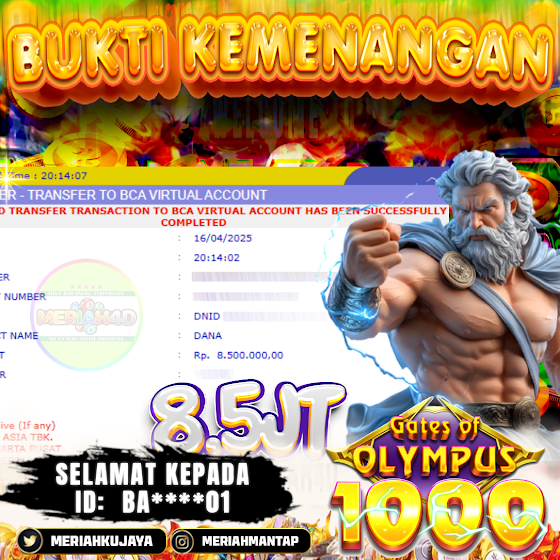 Selamat Kepada ID : BA*****01 Atas Withdraw Rp. 8,500,000 Juta Hari ini. Ditunggu Withdraw Selanjutnya dan ajak juga teman temannya bergabung di Meriah4d