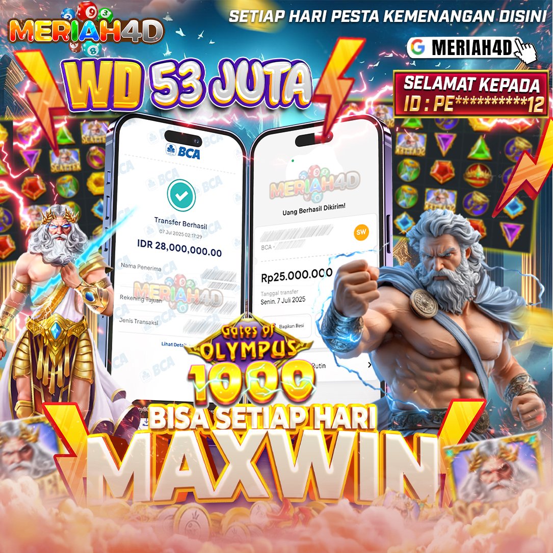 Selamat Kepada ID : PE********12 Atas Withdraw Rp. 53.000.000 Juta Hari ini. Ditunggu Withdraw Selanjutnya dan ajak juga teman temannya bergabung di Meriah4d