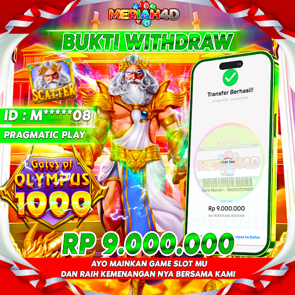 Selamat Kepada ID : M****08 Atas Withdraw Rp. 9.000.000 Juta Hari ini. Ditunggu Withdraw Selanjutnya dan ajak juga teman temannya bergabung di Meriah4d