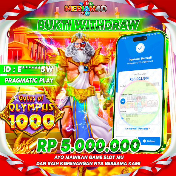 Selamat Kepada ID : E******5w Atas Withdraw Rp. 5.000.000 Juta Hari ini. Ditunggu Withdraw Selanjutnya dan ajak juga teman temannya bergabung di Meriah4d
