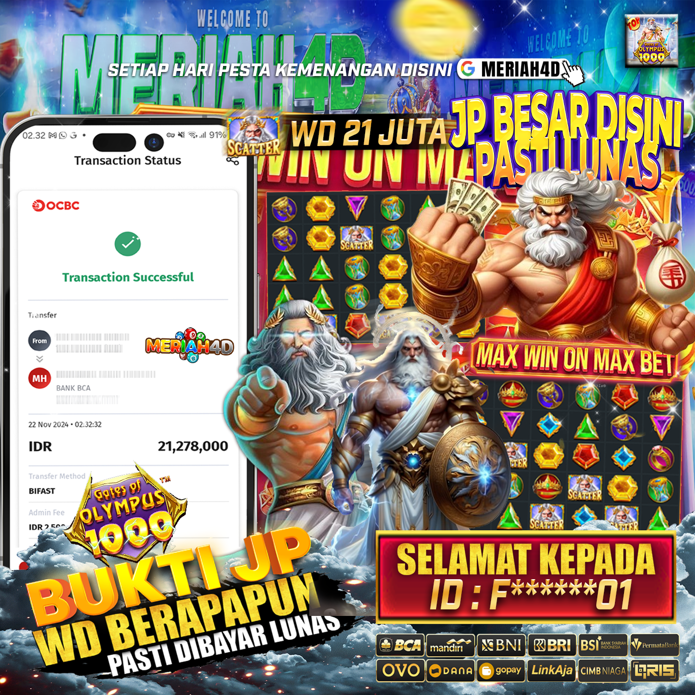 Selamat Kepada Id : K*******01 Atas Withdraw Rp. 21.000.000 Juta Hari ini. Ditunggu Withdraw Selanjutnya dan ajak juga teman temannya bergabung di Meriah4d