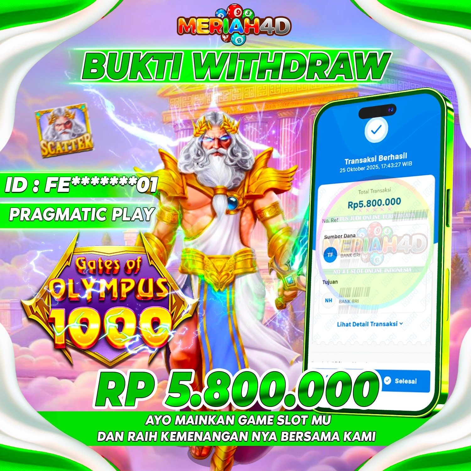 MERIAH4D Bukti Kemenangan SLOT GATES OF OLYMPUS 1000