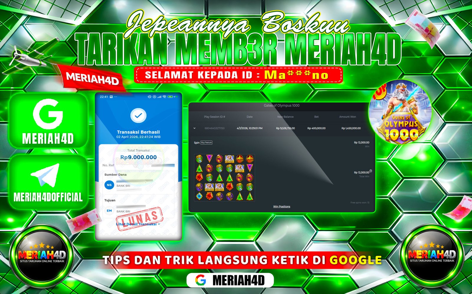 Selamat Kepada ID : MA*******NO Atas Withdraw Rp. 9.000.000 Juta Hari ini. Ditunggu Withdraw Selanjutnya dan ajak juga teman temannya bergabung di Meriah4d
