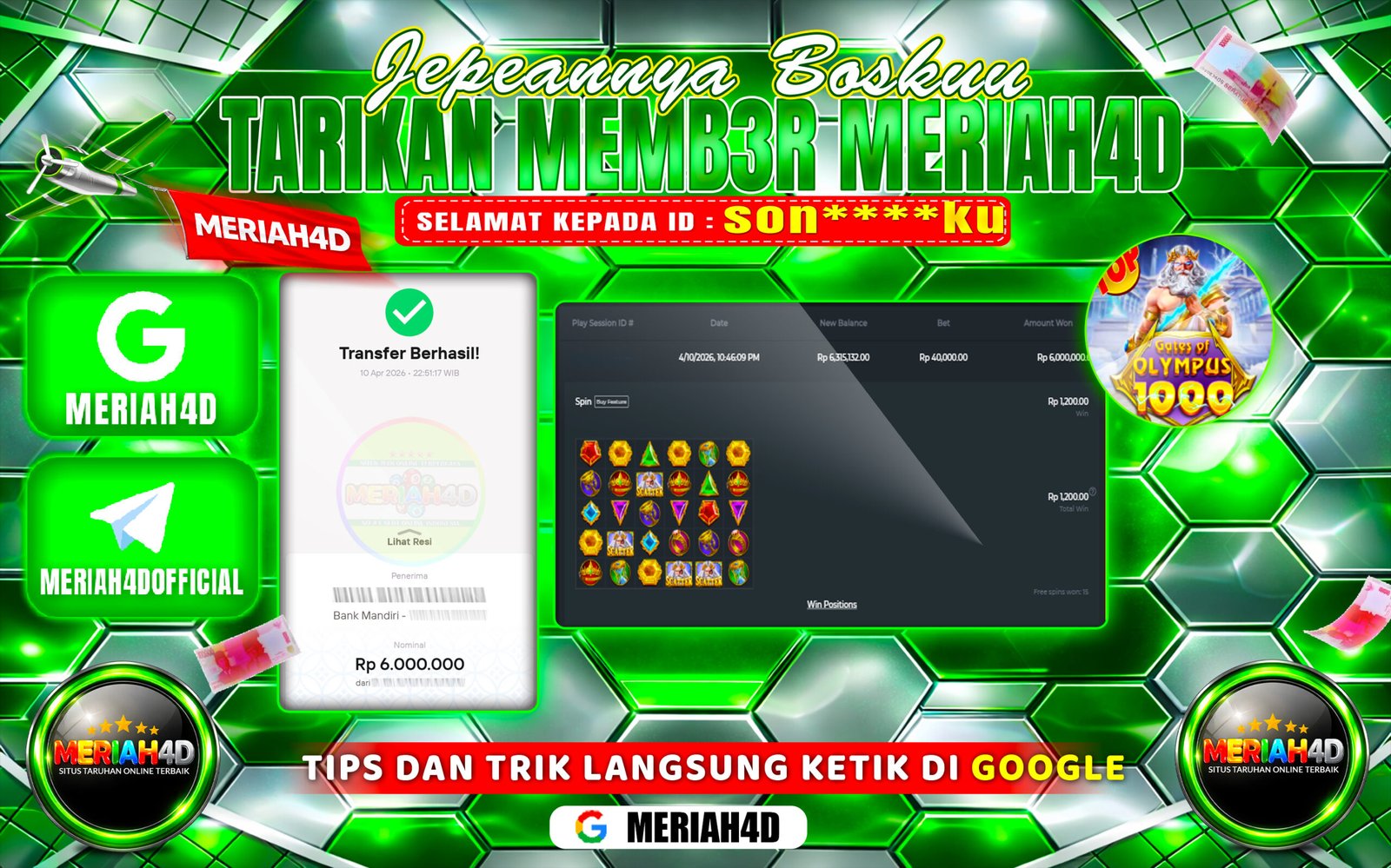 Selamat Kepada ID : Son****ku Atas Withdraw Rp. 6.000.000 Juta Hari ini. Ditunggu Withdraw Selanjutnya dan ajak juga teman temannya bergabung di Meriah4d