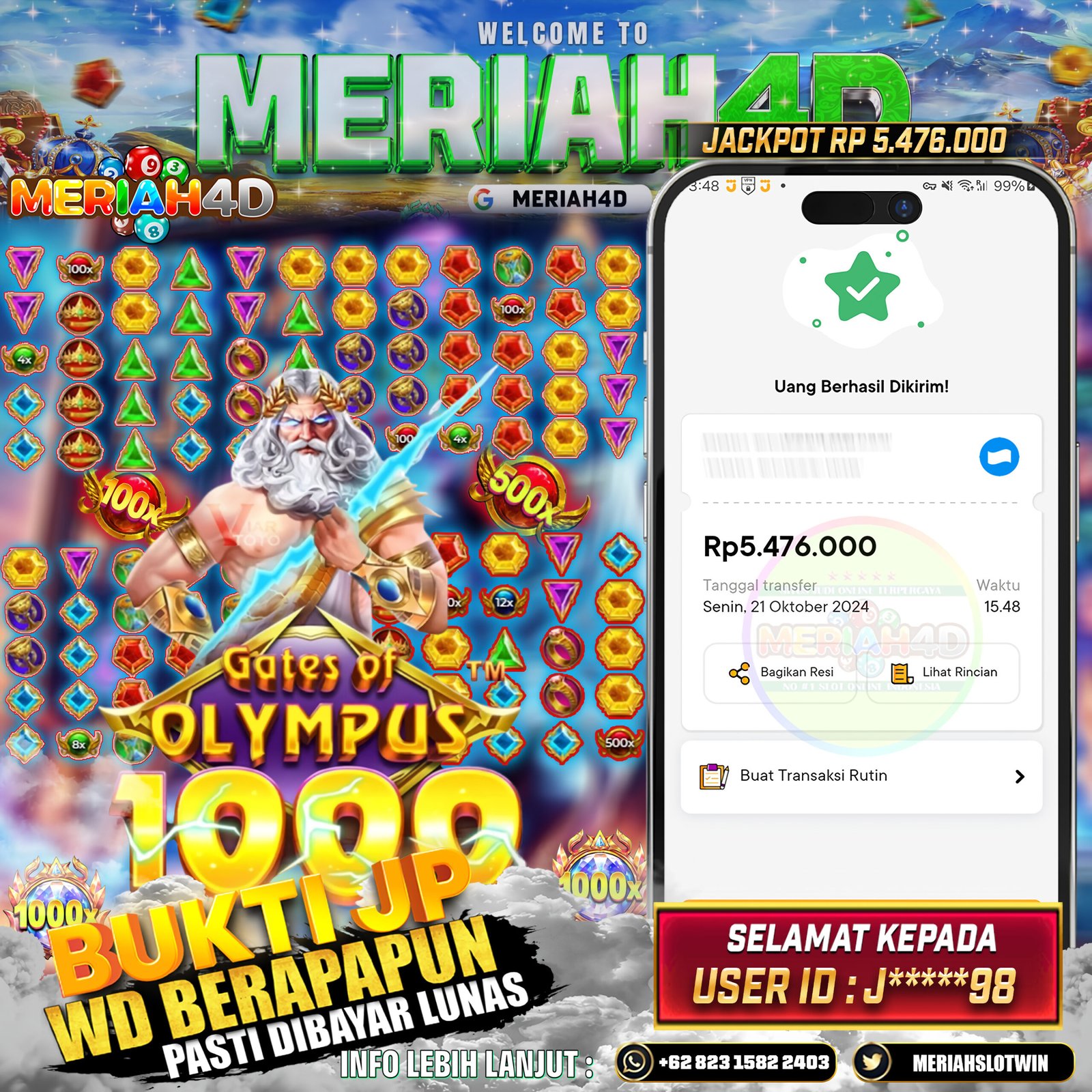 MERIAH4D Bukti Kemenangan Slot GATES OF OLYMPUS 1000