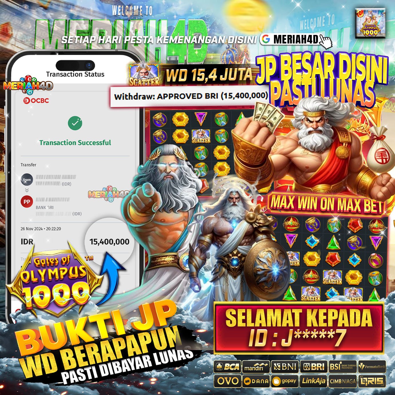 MERIAH4D Bukti Kemenangan SLOT GATES OF OLYMPUS 1000