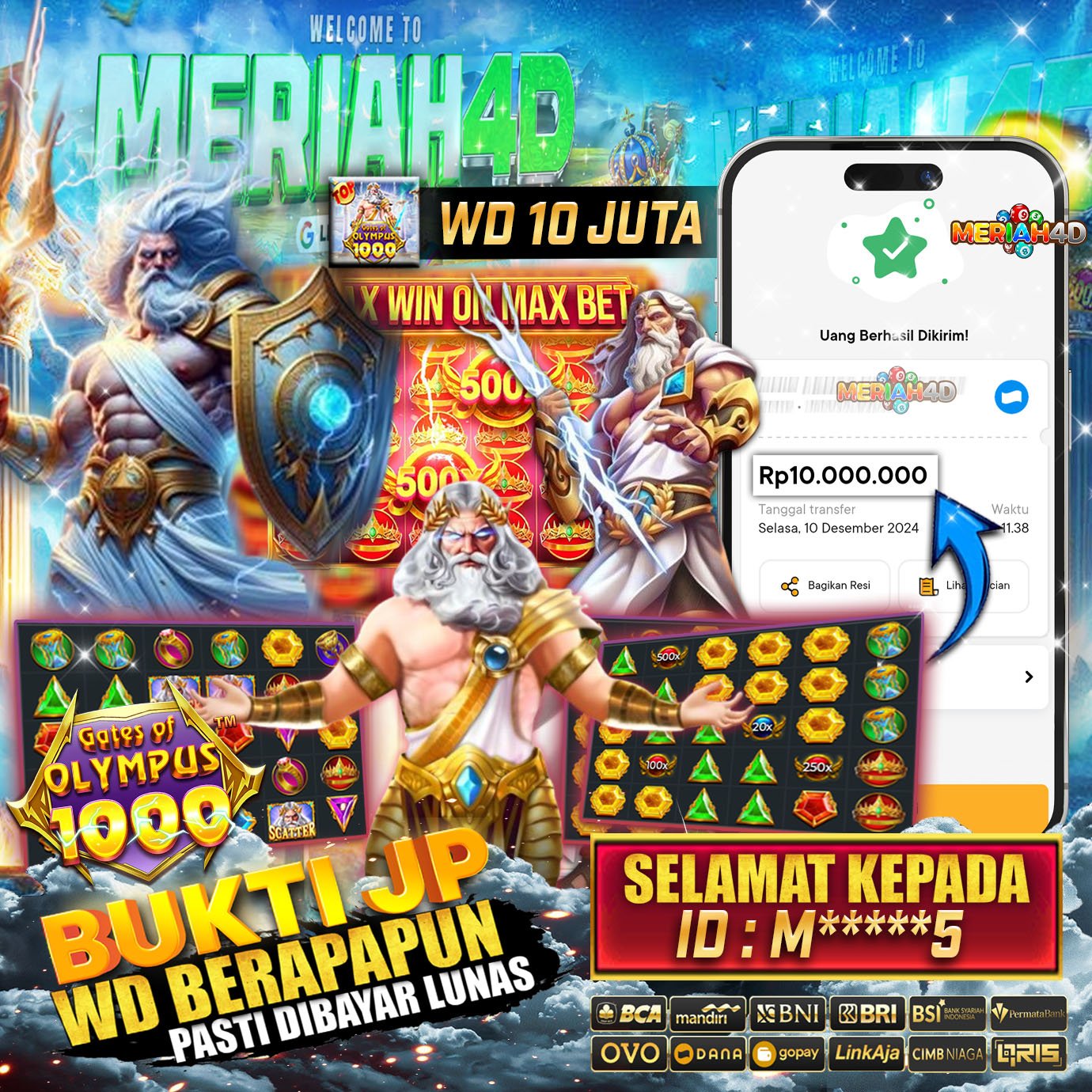 MERIAH4D Bukti Kemenangan Slot GATES OF OLYMPUS 1000