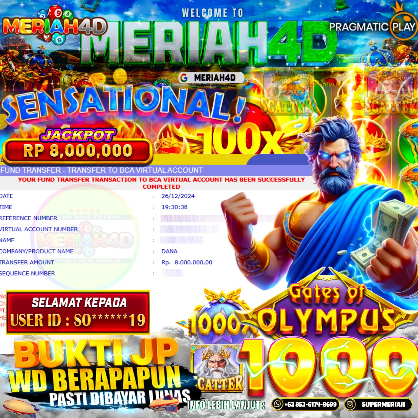 Selamat Kepada ID : SO***19 Atas Withdraw Rp. 8.000.000 Juta Hari ini. Ditunggu Withdraw Selanjutnya dan ajak juga teman temannya bergabung di Meriah4d