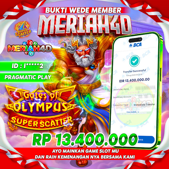 Selamat Kepada ID : I*****2 Atas Withdraw Rp. 13.400.000 Juta Hari ini. Ditunggu Withdraw Selanjutnya dan ajak juga teman temannya bergabung di Meriah4d