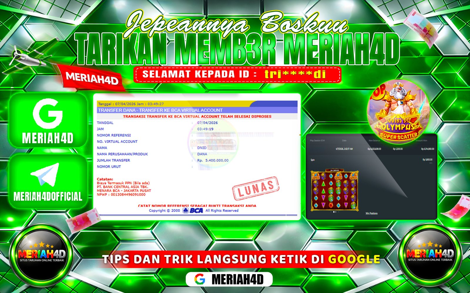 MERIAH4D Bukti Kemenangan SLOT GATES OF OLYMPUS SUPER SCATTER