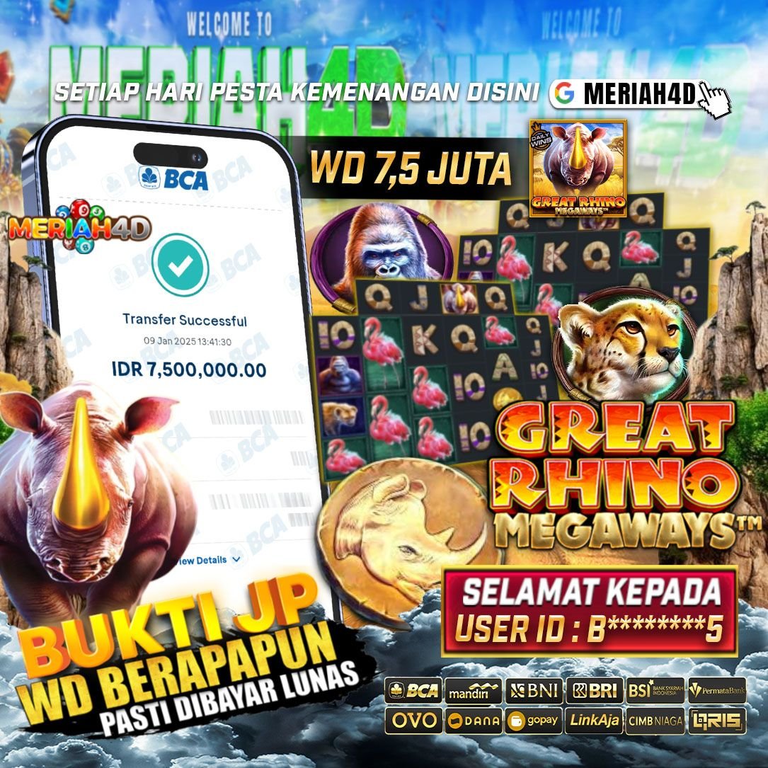 MERIAH4D Bukti Kemenangan Slot GREET RHINO MEGAWAYS