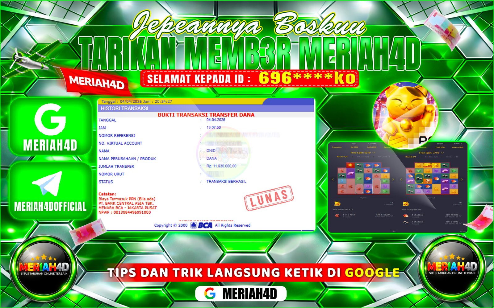 MERIAH4D Bukti Kemenangan SLOT LUCKY NEKO