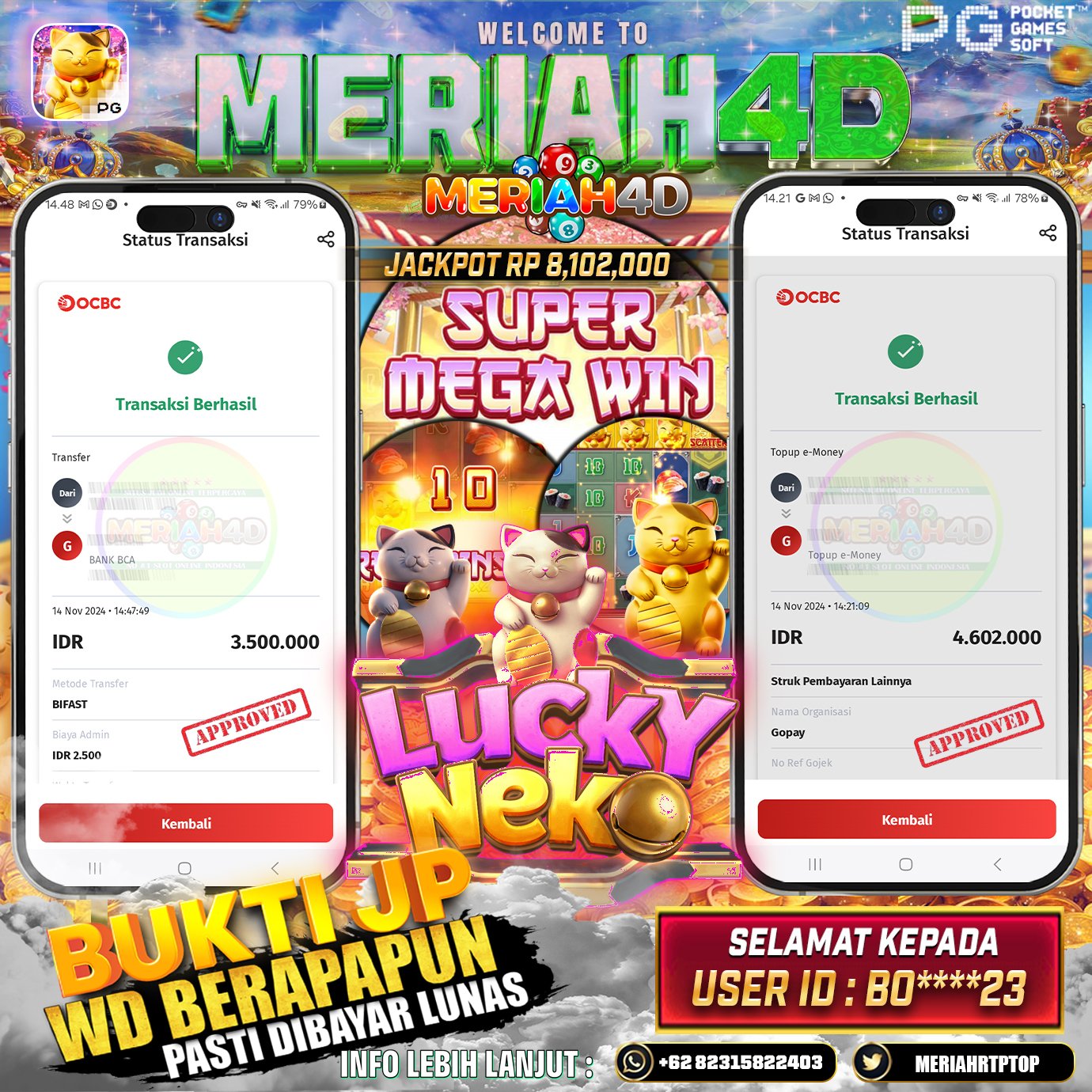 MERIAH4D Bukti Kemenangan Slot LUCKY NEKO