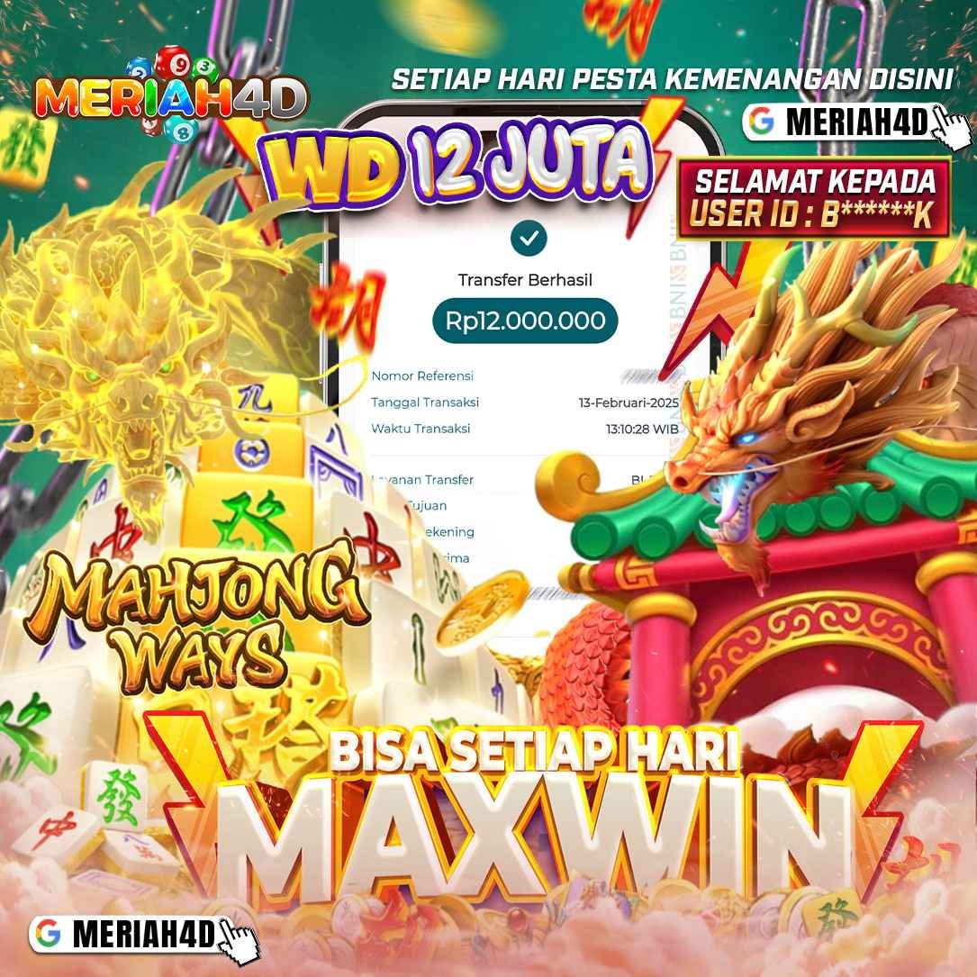Selamat Kepada ID : B******K Atas Withdraw Rp. 12.000.000 Juta Hari ini. Ditunggu Withdraw Selanjutnya dan ajak juga teman temannya bergabung di Meriah4d