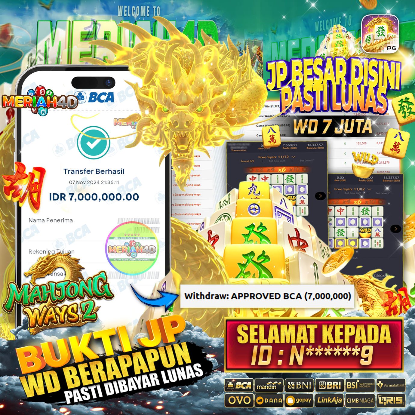 Selamat Kepada Id : N******9 Atas Withdraw Rp. 7.000.000 Juta Hari ini. Ditunggu Withdraw Selanjutnya dan ajak juga teman temannya bergabung di Meriah4d