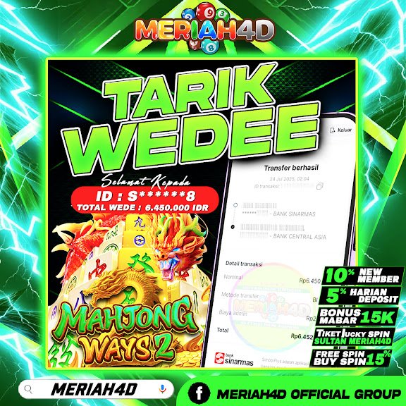 Selamat Kepada ID : S*****8 Atas Withdraw Rp. 6.450.000 Juta Hari ini. Ditunggu Withdraw Selanjutnya dan ajak juga teman temannya bergabung di Meriah4d