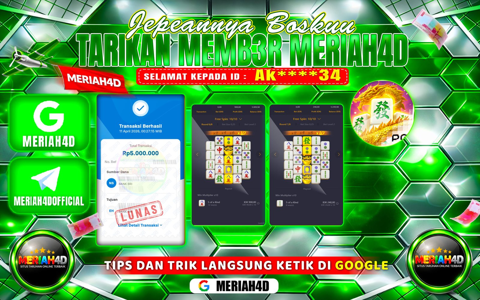 MERIAH4D Bukti Kemenangan SLOT MAHJONG WAYS 2