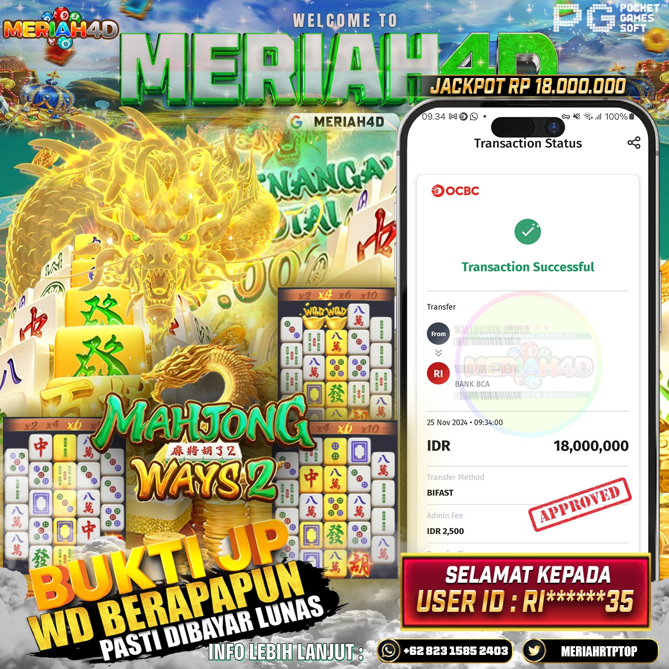 MERIAH4D Bukti Kemenangan Slot MAHJONG WAYS 2