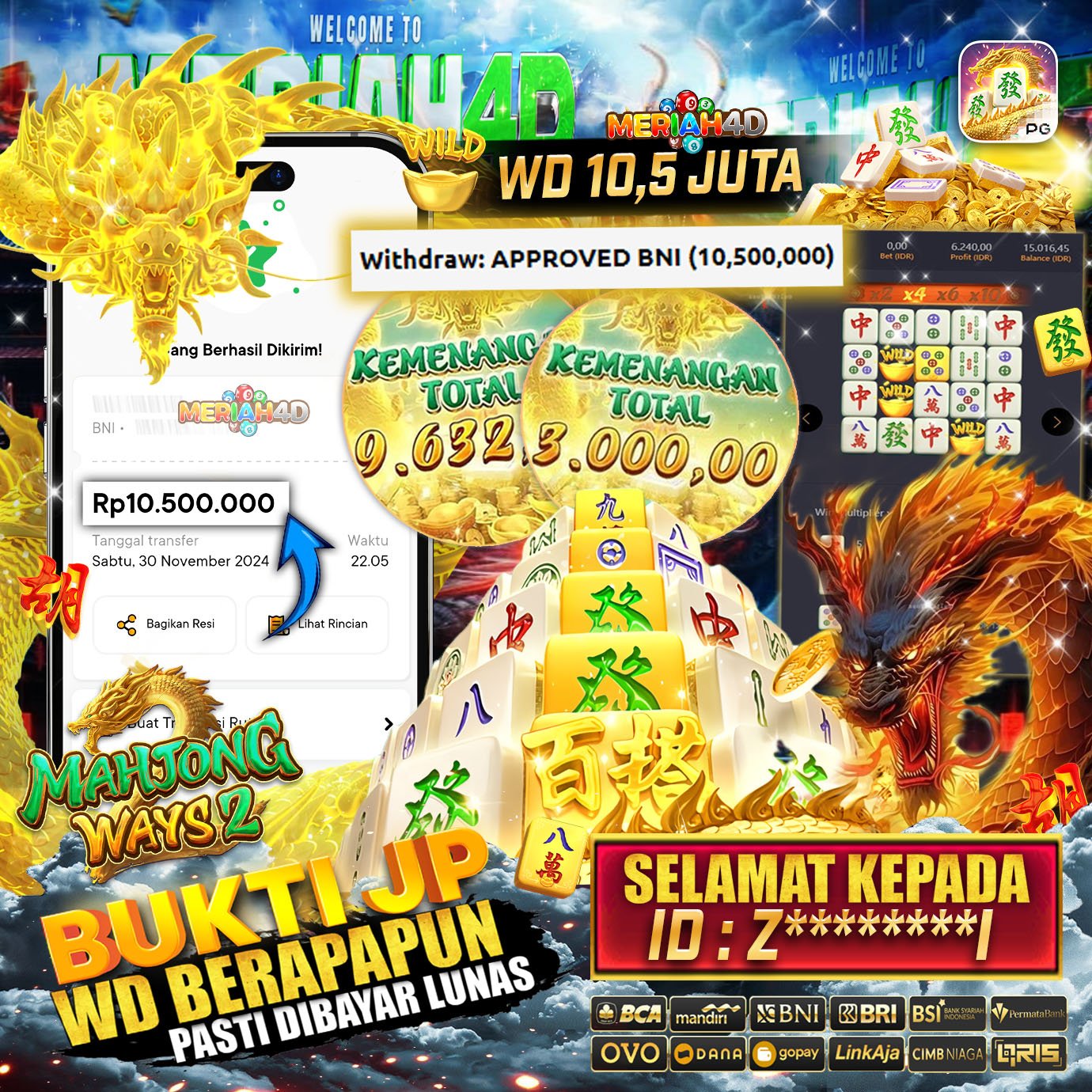 Selamat Kepada Id : Z****I Atas Withdraw Rp. 10.500.000 Juta Hari ini. Ditunggu Withdraw Selanjutnya dan ajak juga teman temannya bergabung di Meriah4d