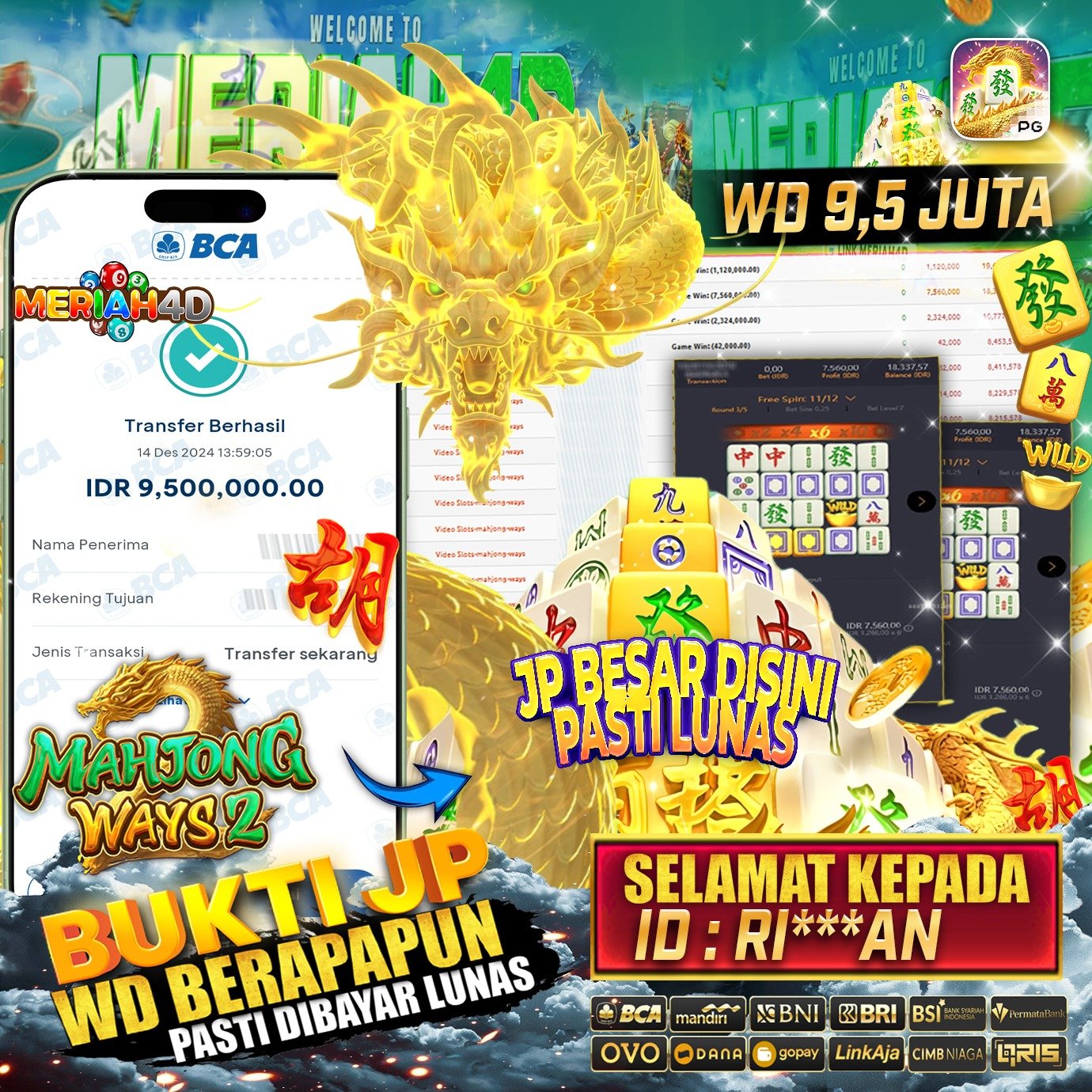 MERIAH4D Bukti Kemenangan Slot MAHJONG WAYS 2