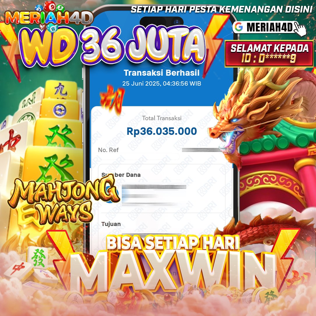 Selamat Kepada ID : D*****9 Atas Withdraw Rp. 36.035.000 Juta Hari ini. Ditunggu Withdraw Selanjutnya dan ajak juga teman temannya bergabung di Meriah4d