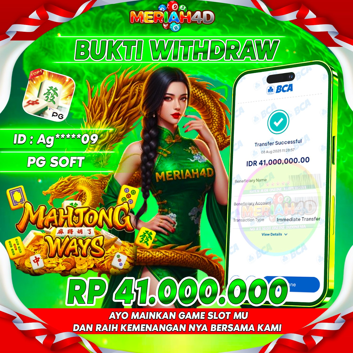 Selamat Kepada ID : AG*****009 Atas Withdraw Rp. 41.000.000 Juta Hari ini. Ditunggu Withdraw Selanjutnya dan ajak juga teman temannya bergabung di Meriah4d