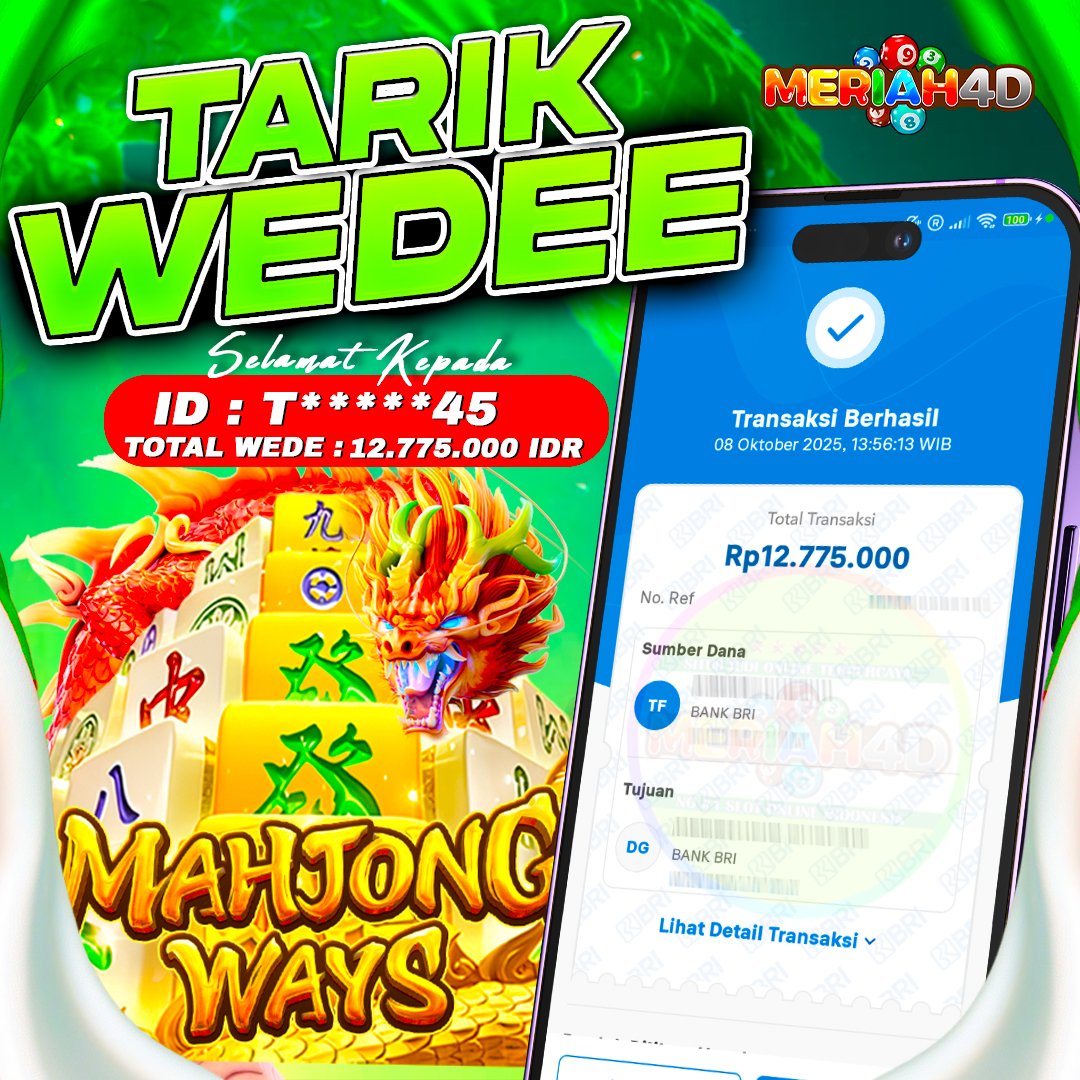 Selamat Kepada ID : T******45 Atas Withdraw Rp. 12.775.000 Juta Hari ini. Ditunggu Withdraw Selanjutnya dan ajak juga teman temannya bergabung di Meriah4d