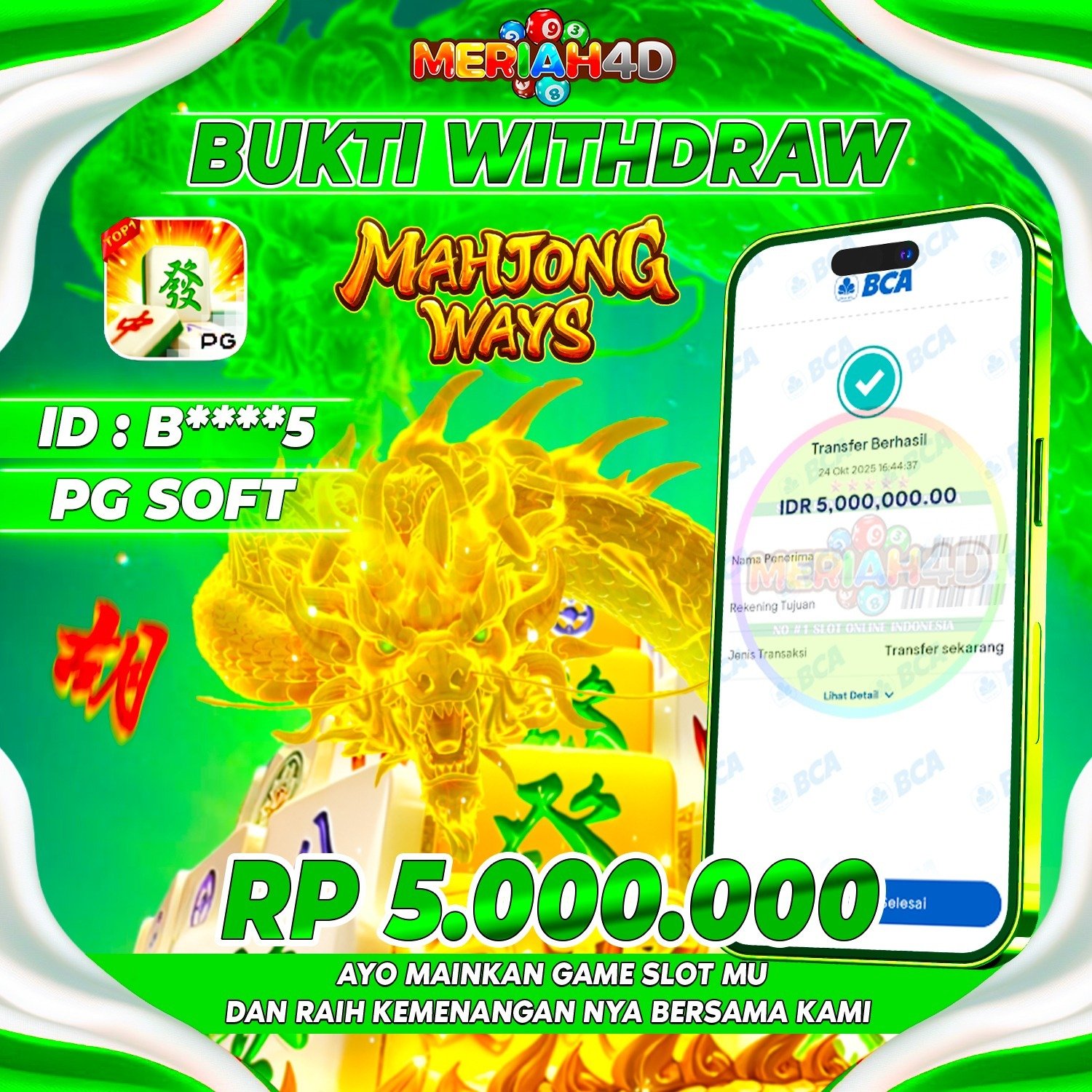 Selamat Kepada ID : B****5 Atas Withdraw Rp. 5.000.000 Juta Hari ini. Ditunggu Withdraw Selanjutnya dan ajak juga teman temannya bergabung di Meriah4d