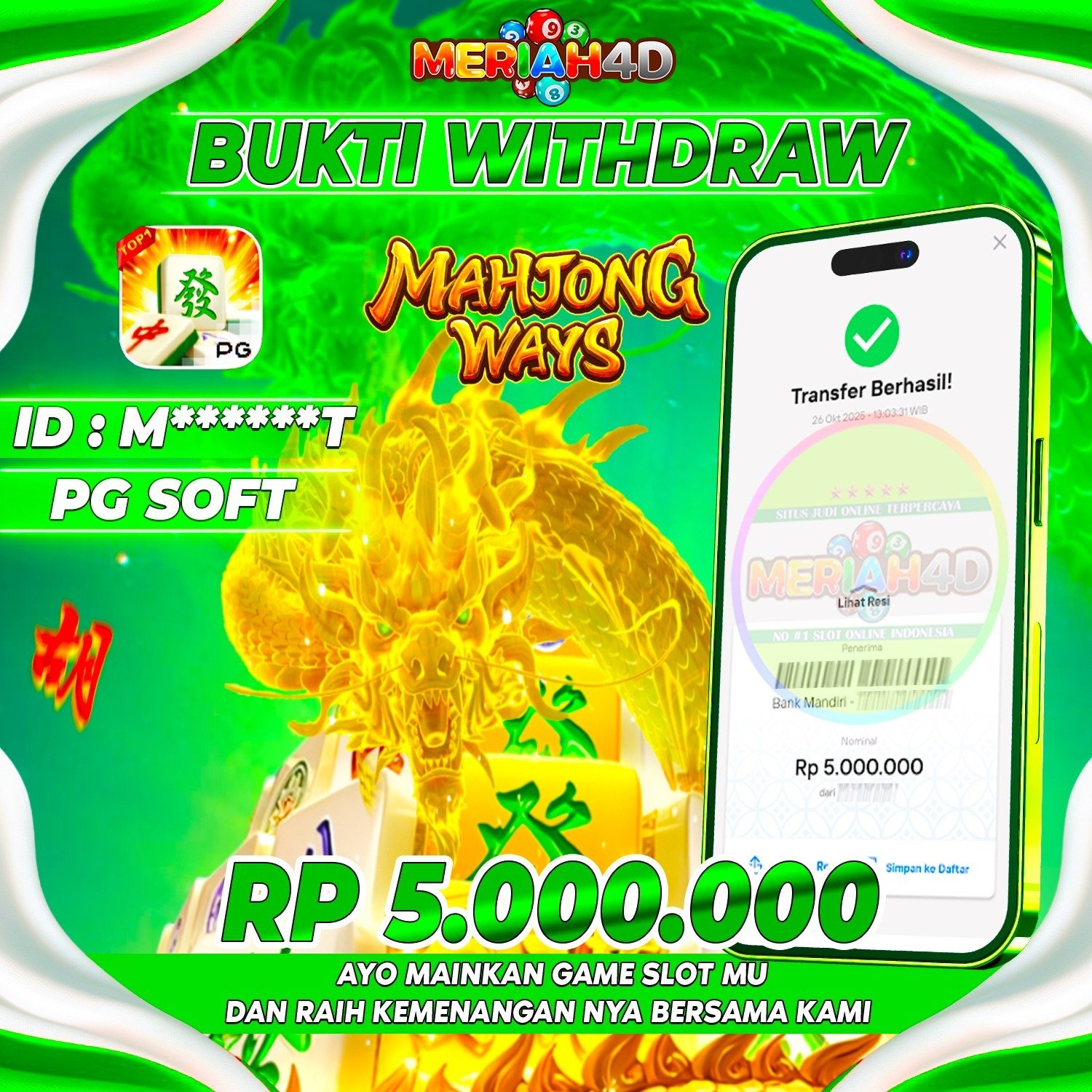 Selamat Kepada ID : M******T Atas Withdraw Rp. 5.000.000 Juta Hari ini. Ditunggu Withdraw Selanjutnya dan ajak juga teman temannya bergabung di Meriah4d